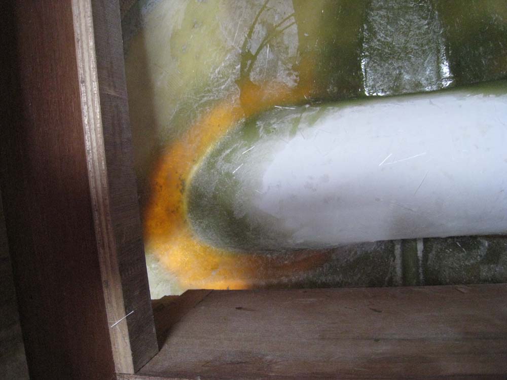 Till monteringen i 78:an blir även jag tvungen ta bort tanken. En idé är, då bogmotorn troligen kommer att ta upp all plats under den främre tvärgående sittdynan (då 78:an är kortare), att lägga en väv- eller plastvattensäck framför bogmotorn och fram under utrymmet i förpikens garderobsdurk, som då kommer att bli högre upp. Jag tänker mig att vävtanken då kommer att få ett utseende i båtens längdled som ett "liggande L" med högsta punkt under den förhöjda garderobsdurken. Detta innebär något mindre vattenutrymme men kanske ändå acceptabelt mindre... från 120 lit till ca 80-90 lit?