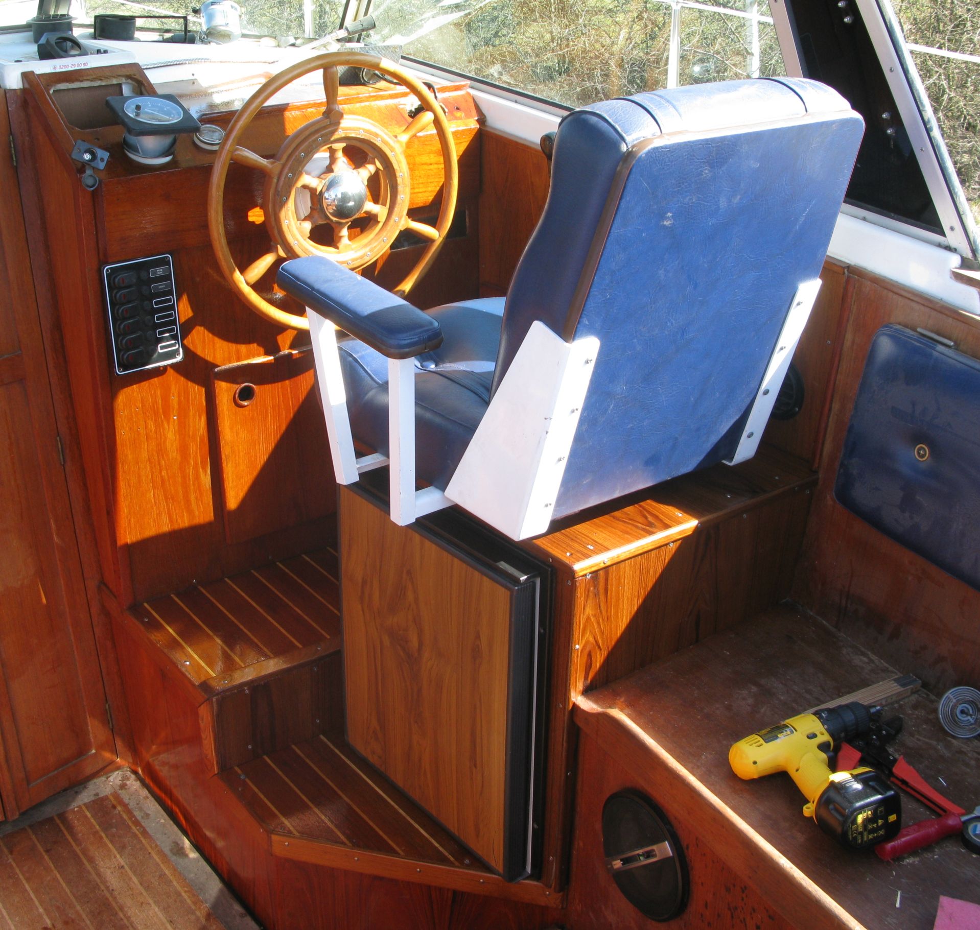 . Jag pratade med två "fixare" innan projektet och det visade sig att de skulle ha närmare 20.000 kr för att göra jobbet, det var då min tjurighet kom fram och jag beslöt att göra det hela själv- För mig och min fru är ett riktigt kylskåp en stor komforthöjare när man är ute på sjön så sagt o gjort, jag satte sticksågen i förarplatsen och satte igång. Jag har väl gjort en del småmissar eftersom jag planerade under arbetets gång men jag får lov att säga att resultatet blev helt ok.
