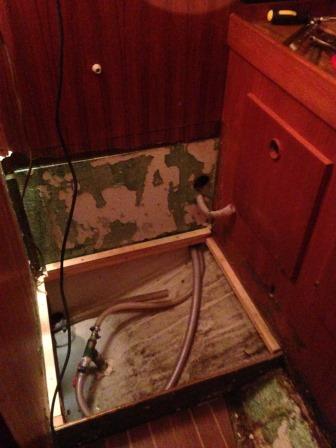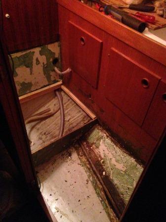 Testar att delge vinterns projekt. Den gamla gistna toan åkte ut liksom sunkig isolering och slangar till septik. Fick tag på en fabriksny orginaltank men fick inte ut den gamla. Passade på att dra ny el till enskild säkringsplint och dra el till USB-uttag i köket. Hoppas nu att utökad tankventil och slangar håller för sugtömningen