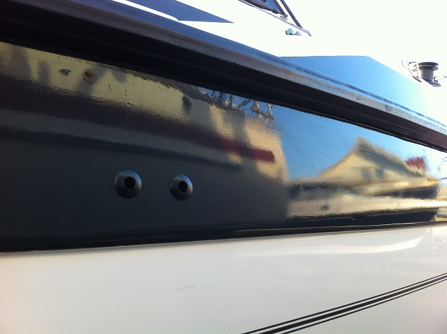 Imorgon skall jag borra två 20 mm hål strax under relingen midskepps på bb sida, bakom diskbänken sett. Har köpt två skrovgenomföringar som skall avleda ett vattenfyllt kölsvin genom två armerade 19 mm plastslangar med svanhalsmontering strax för om holdingtanken. Har köpt två 50-liters/min. dränkbara länspumpar á 1.200:- med automatstart för montering på var sin sida om tvärbalken i båtens mitt (Kölsvinet har ingen passage mellan för och akterdel i "tvärbalken" som sitter framför bälgen i kölsvinet.